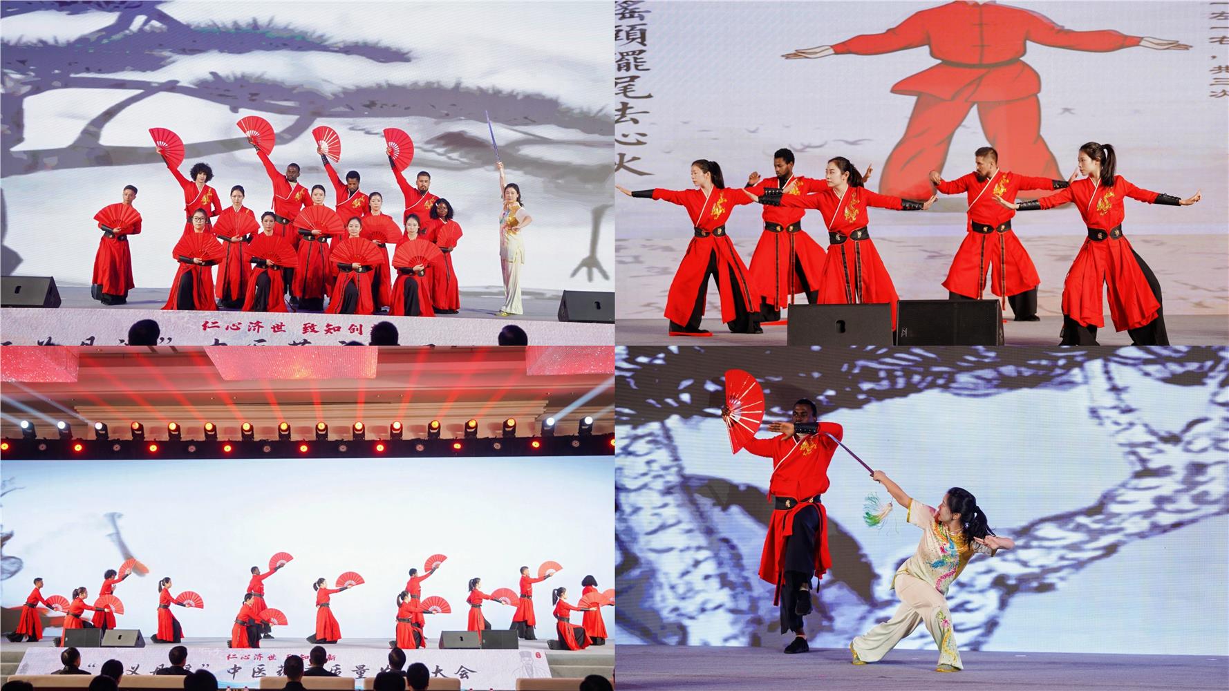 开幕式上,我校国际学生与义乌市中医院丹溪文化传人联袂献艺,以一场融合八段锦与武术的精彩表演,为现场观众呈现了一场跨越国界的中国文化盛宴。舞台上,中外表演者身着红黑相间的传统服饰,动作行云流水、刚柔相济——八段锦的轻灵圆活与武术的刚劲有力相得益彰,“调理脾胃须单举”的养生要义与亮扇的力量美学完美融合,每一招一式都展现出中国文化的深厚底蕴。