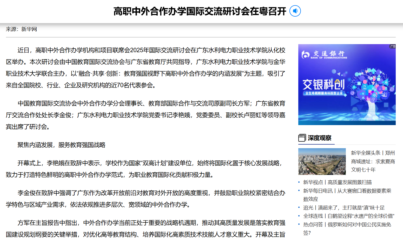新华网:高职中外合作办学国际交流研讨会在粤召开