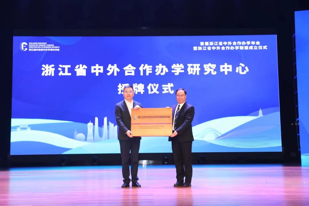 会上举行了浙江省中外合作办学研究中心授牌仪式和浙江省中外合作办学联盟成立仪式。中外合作办学研究中心、浙江大学国际联合学院(海宁)、宁波诺丁汉大学、温州肯恩大学代表作主旨报告。