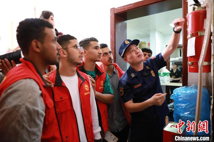 5月9日,在浙江义乌,来自也门、摩洛哥等国家(地区)的8名国际消防志愿者与当地消防救援支队消防监督人员一起,走进辖区多家异国风味餐厅,开展“以外帮外”消防安全宣传活动。