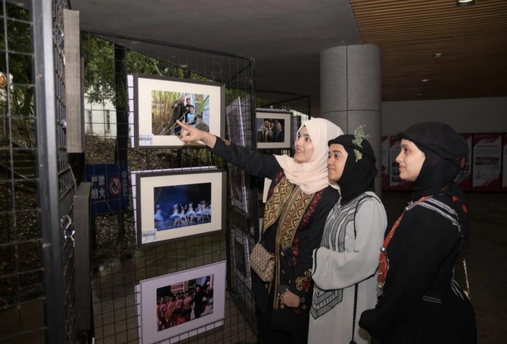 4月30日上午9时30分许,恰逢义乌工商职业技术学院第八届国际艺术节召开之际,由义乌工商职业技术学院国际教育学院主办的“在‘浙’里看见世界”摄影展在水上报告厅长廊举行,展览展出吴琅文精心创作的40幅摄影作品,受到中外师生的欢迎。一些留学生找到照片中的自己,激动不已,急忙上前合影留念。