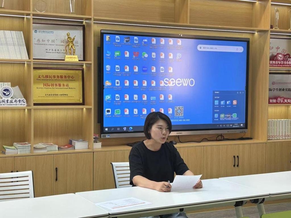 为确保师德师风主题教育工作深入到学院每位教师,学院还召开了师德师风专题学习会。学院党总支负责人根据上级相关文件精神,对近期的违反教师职业行为十项准则典型案例进行了通报学习,希望在座的每位老师能够引以为戒,做到警钟长鸣。她要求大家认真研读《义乌工商职业技术学院师德师风学习读本》,学院也将不断通过学院教师大会、外聘教师专项培训会、党支部主题党日活动等不同途径,学习宣传落实《新时代高校教师职业行为十项准则》,将师德师风标准要求和底线红线融入其中,确保全员覆盖,入脑入心。最后学院邀请全国职业院校技能大赛教学能力比赛(高职组)一等奖和“十大标兵”荣誉获得者陈旦老师为全院教师做了经验分享。陈旦从绵绵发力、久久为功,团结协作、其利断金,不忘初心、爱岗敬业三个方面就教学和比赛的经验进行了分享。她认为学院教师怀抱着“架文化桥梁、做文化使者”的初心使命实施日常教学,引导国际学生自觉自愿地讲好中国故事,传播好中国声音。