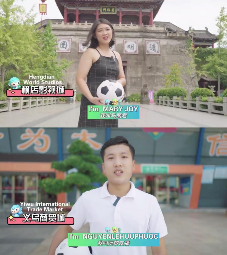 “这里是义乌国际商贸城,没有一个人可以空着手走出这里”、“大家好,这里是东方好莱坞横店……”