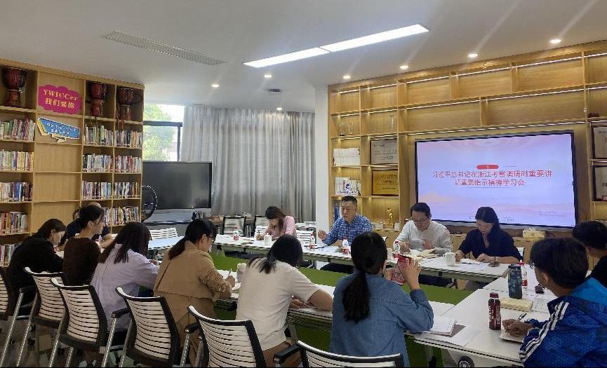 主题学习环节,全体党员教师一起学习了《习近平新时代中国特色社会主义思想专题摘编》、习近平对宣传思想文化工作重要指示精神,并在线上参观了大道之行“八八战略”实施20周年大型主题展览,同时开展了“守根铸魂、明德守法”专题学习。