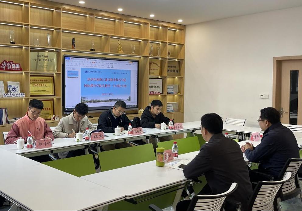 近日,浙江建设职业技术学院国际教育学院院长孔杨勇一行4人来校访问交流。学院负责人、国际合作与交流科和国际学生管理科相关老师等在国际创客园与来宾进行座谈交流。