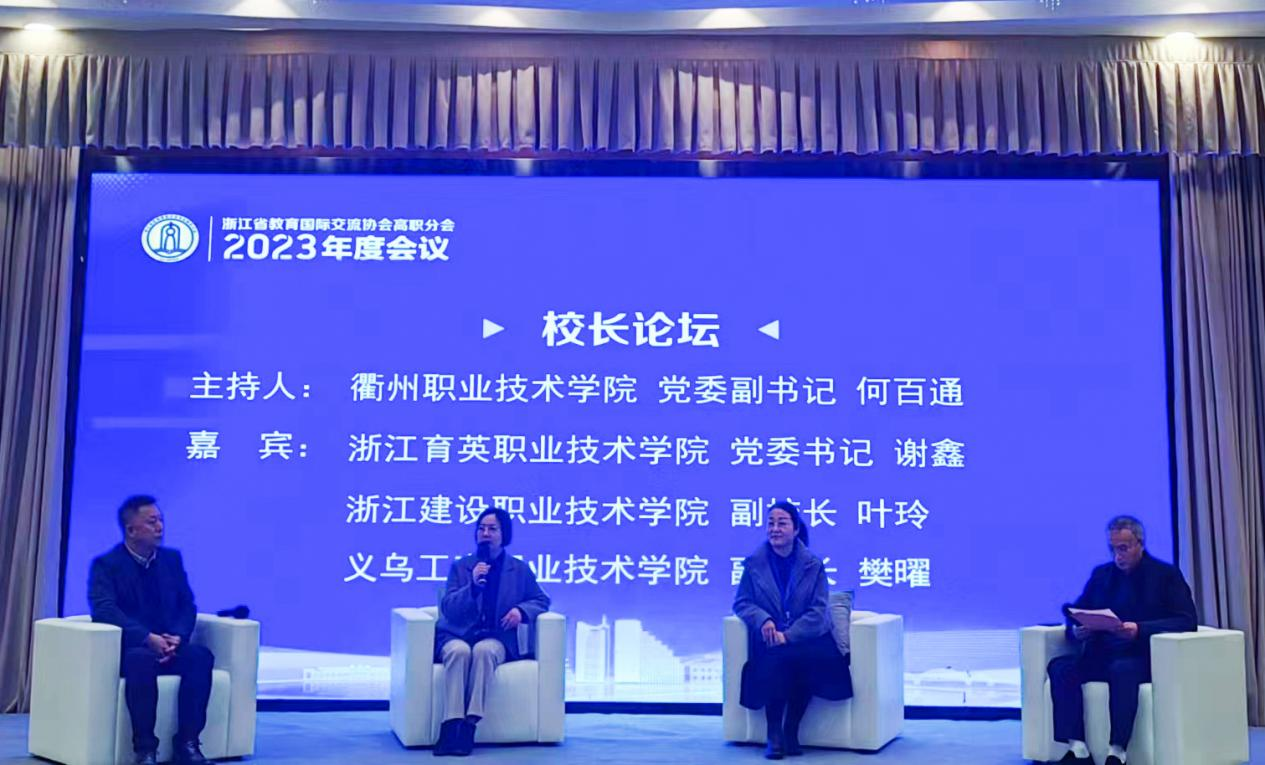 12月6日,浙江省教育国际交流协会高职分会2023年度会议在衢州举行。中国教育国际交流协会常务理事宗瓦,中国教育国际交流协会港澳台办主任金雷,省教育厅国际合作与交流处处长、省教育国际交流协会秘书长蓝晶晶,省教育国际交流协会高职分会会长、浙江机电职业技术学院校长贺星岳及全省40多所职业院校的领导、嘉宾参加。我校党委委员、副院长樊曜参加会议并进行了校长论坛的主题分享,我院相关负责人等一同参会。