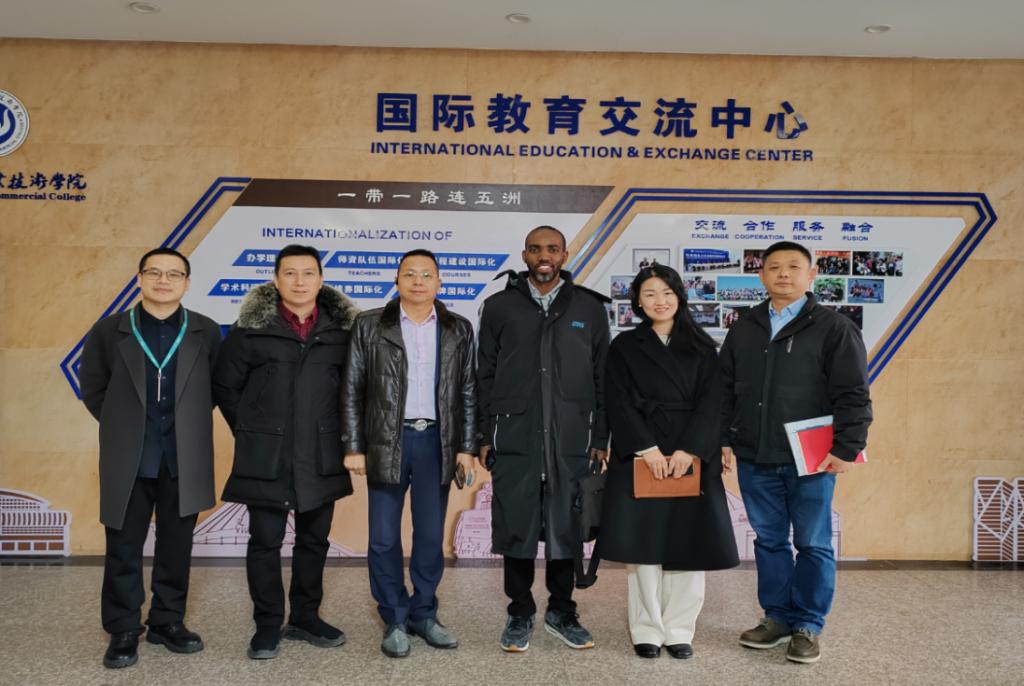 2023年12月20 日下午,胜利之星集团(义乌赢星供应链管理公司)与卢旺达教育界代表Furaha Espoir一行来到我院,就开展国际人才培养与国际合作进行调研交流,学院党总支负责人及国际中文教研部、国际学生管理科相关负责人陪同参观并展开座谈。