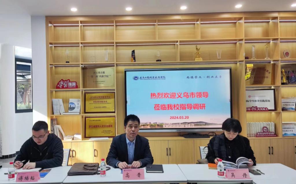 3月20日下午,义乌市委常委高晋、义乌市外事办党组书记、主任吴丹一行莅临我校调研教育国际化工作,校党委书记李昌祖、党委委员、副院长樊曜、国际教育学院(国际处)负责人等陪同考察交流。