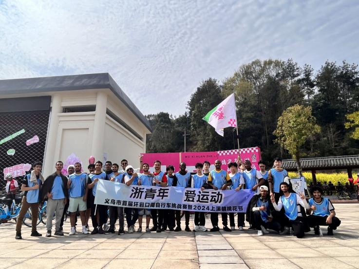 同一时间,备受瞩目的“情定岩口湖相约桃花坞”义乌市首届环湖自行车挑战赛暨2024上溪桃花节隆重开幕。来自全国各地的青年骑行爱好者、数百名义乌市工商技术职业学院大学生、国际学生,在18公里的环湖“桃花赛道”上,舒展了一幅“人在花间游,车在画中行,风景扑面来”的运动生态画卷。骑行路线上溪镇串联起岩口湖、桃花坞、党建阵地、溪华棋乐小镇、岩口水上乐园、共富灶等青年研学红色文旅点位。