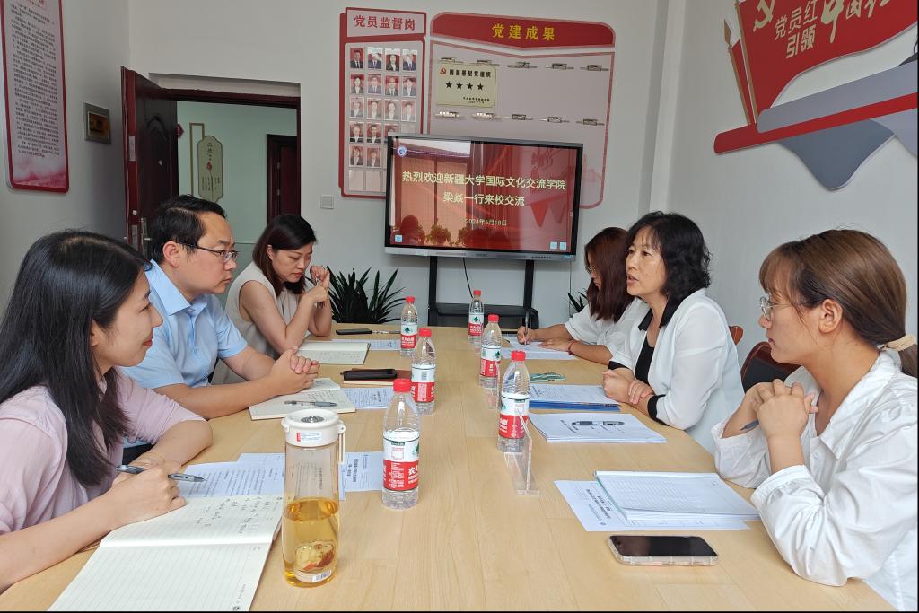 6月18日下午,新疆大学国际文化交流学院副院长梁焱一行来院考察交流。学院相关负责人及国际中文教研部教师参加座谈。
