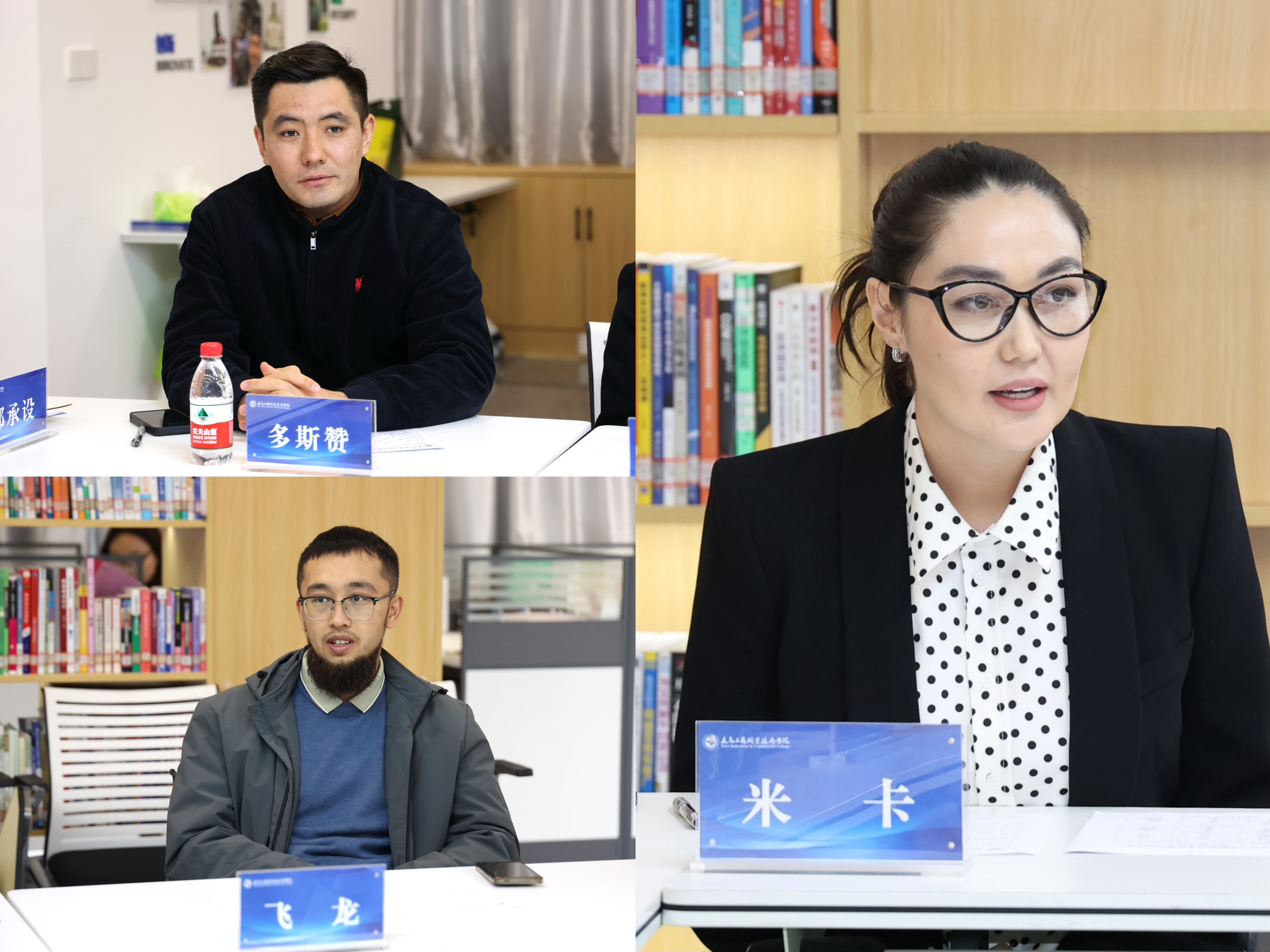 学校吉尔吉斯斯坦籍优秀创业毕业生米卡、哈萨克斯坦籍外教多斯赞博士、乌兹别克斯坦籍优秀创业毕业生飞龙分别讲述了自己在学校的学习、工作和义乌的创业故事。得益于中国和中亚国家日益紧密的合作关系和义乌优越的营商环境,米卡和飞龙等毕业生创办的企业发展势头强劲。多斯赞博士表示作为高校教师,在义乌充当国际人文交流使者感到很有成就感。