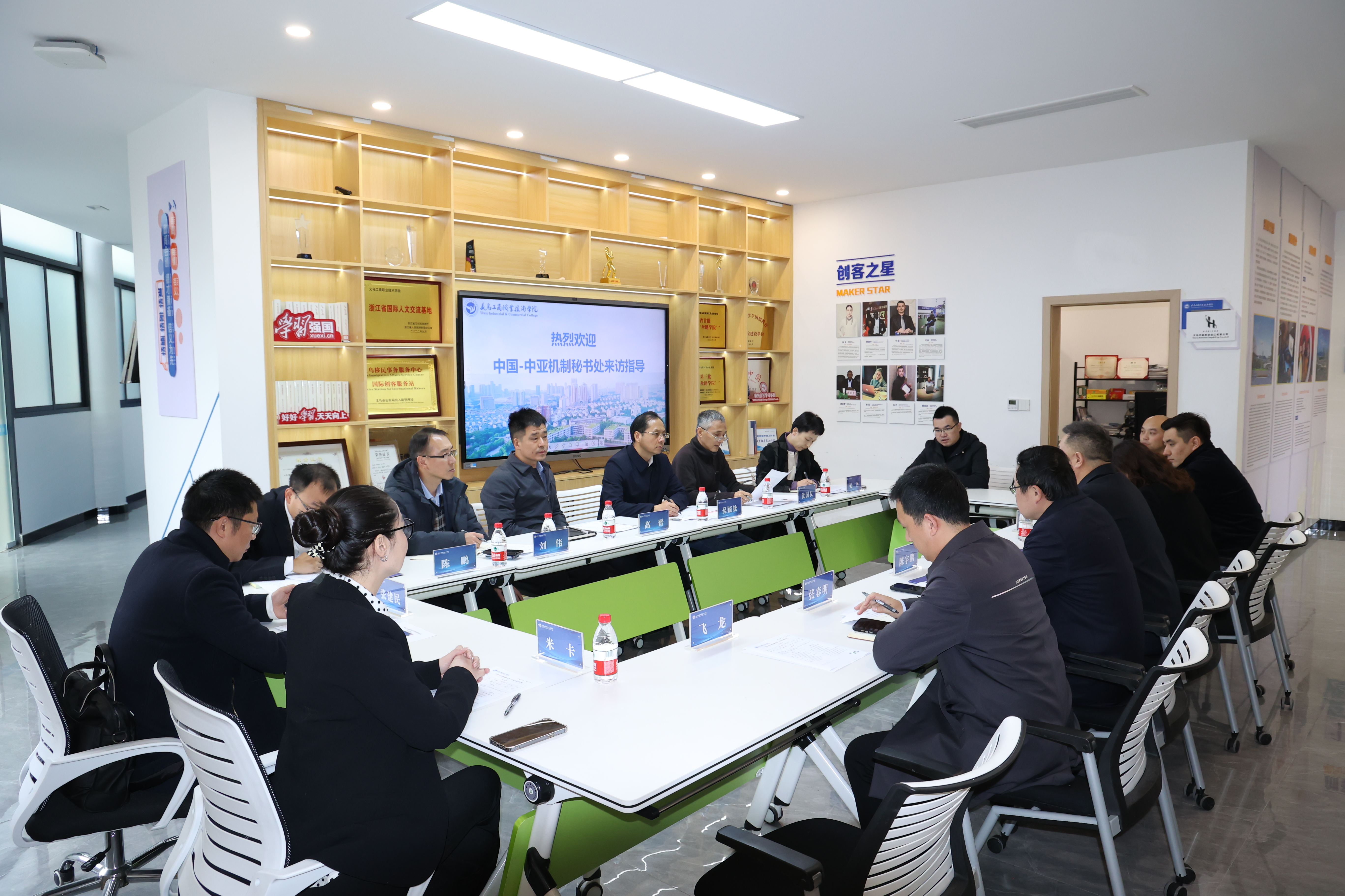 12月6日下午,中国—中亚机制秘书处执行主任吴颖钦一行来校调研国际学生创业教育和国际人文交流工作。浙江省外办经济与新闻处二级调研员沈国权,义乌市委常委、副市长高晋,义乌市外办主任吴丹等陪同调研,校党委委员、副院长樊曜,国际处负责人陪同考察、交流,学校中亚国家优秀师生代表参加座谈。