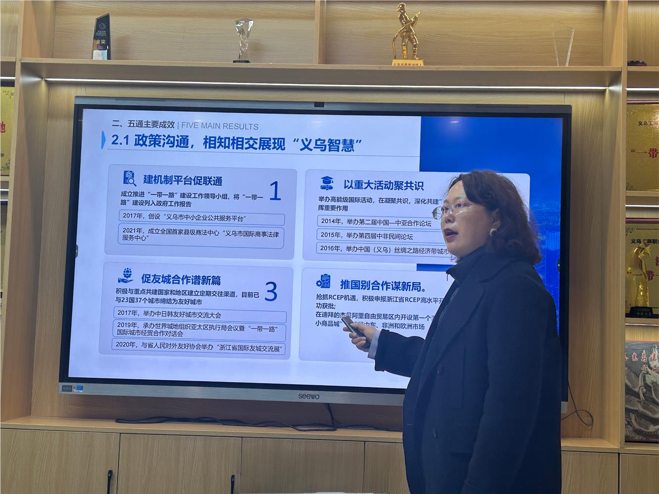 12月13日,“中文+职业技能”培训国际传播工作室邀请复旦大学义乌研究院“一带一路及全球治理中心”负责人武静教授在国际创客园作了题为“义乌参与共建‘一带一路’发展报告”的精彩讲座。讲座由学院负责人主持,我院全体教师及外语外贸学院等相关学院教师们参与了本次讲座。