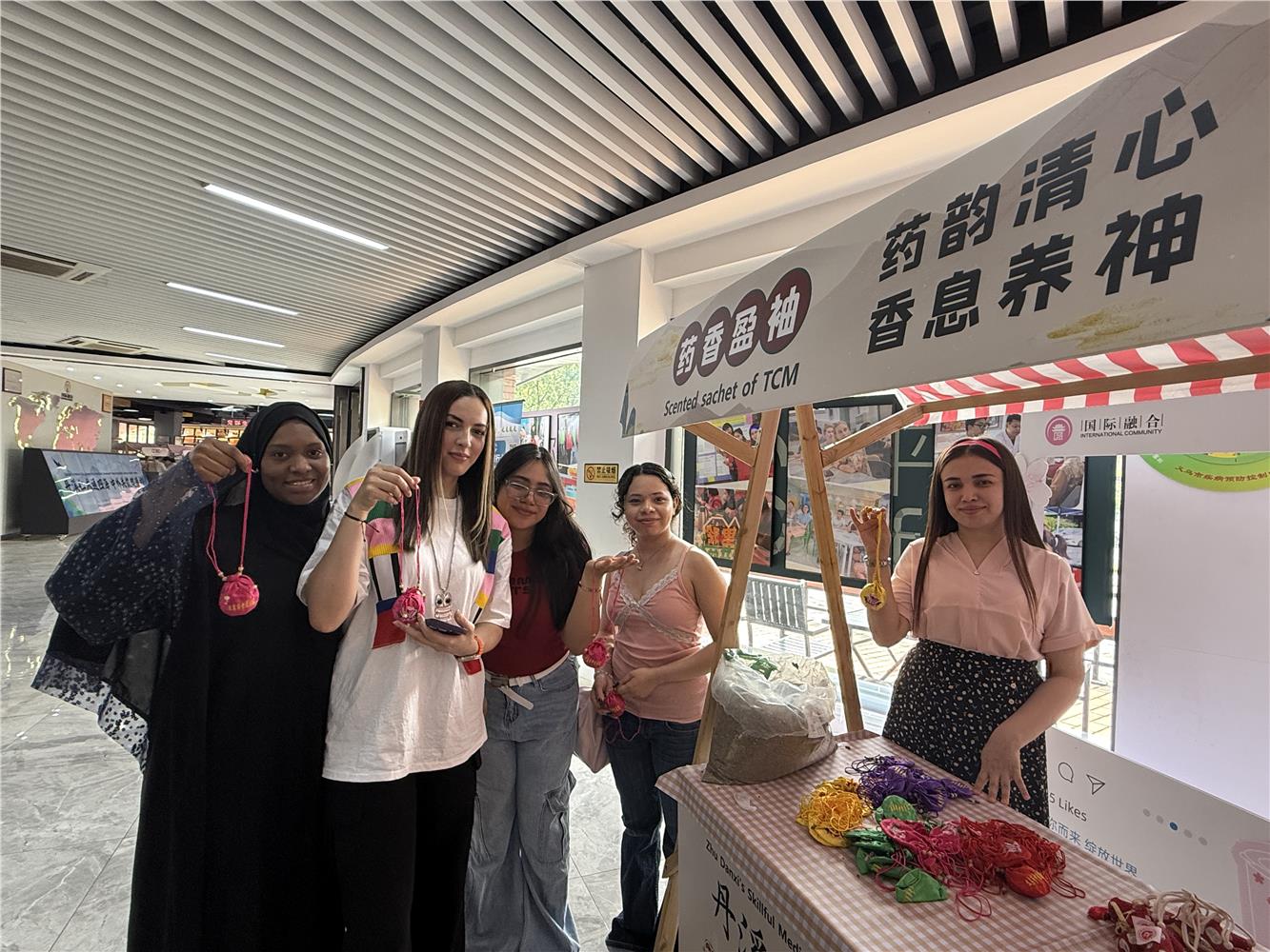 活动现场设置四大闯关环节,将中医理论与趣味体验深度融合。在“把脉问诊”环节,专业中医师为中外友人进行传统中医“望闻问切”,并给出个性化养生建议。来自也门的伊布有失眠困扰,在“把脉问诊”处,中医师仔细为他把脉、观察舌苔、询问症状后,教给他一些简单的穴位按摩方法,帮助他改善睡眠。在“妙手外治”区域,针灸、拔罐、艾灸等传统疗法引发热烈反响。在专业医师的操作下,中外友人亲身体验了这些古老疗法的神奇效果,不少人惊叹于中医外治的独特魅力。学生们还在药师指导下,根据驱蚊、安神、提神等不同需求,调配薄荷、艾叶、佩兰等八味中药材。来自洪都拉斯的娜萨将自制香囊挂在背包上:“这个香囊能驱蚊,淡淡的药香还能让我在学习时更专注。”