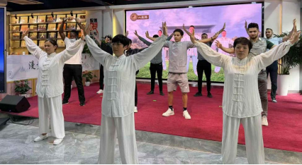 八段锦教学区,国际学生们在悠扬的古琴声中舒展筋骨。帮助学生在动作分解的指导下学习“左右开弓似射雕”“摇头摆尾去心火”等招式。伊朗学生浩然练习后表示:“八段锦的每个动作都需要呼吸配合,练完感觉身体轻盈了许多。我非常喜欢,我想学会了教给家人。”