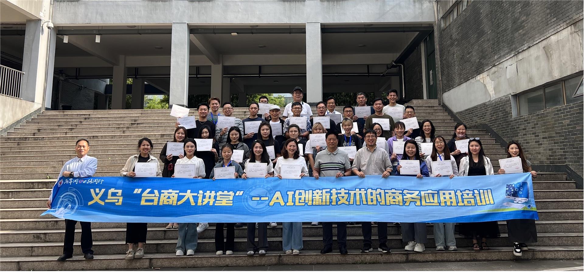 2025年5月9日至11日,由义乌市台办主办、学校承办的义乌“台商大讲堂”——AI创新技术的商务应用培训在我校顺利进行。金华市台办副主任胡竹根、经济协调处处长梁永海、义乌市台办主任王烈刚、对台经济协调科科长陈金苗、对台交流联络科科长赵之青、学校港澳台办负责人及参加培训的60余位学员共同出席开班仪式。
