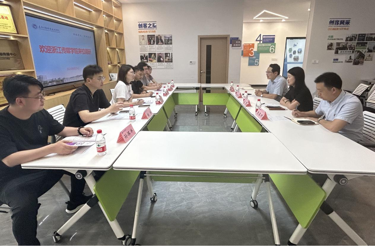 6月25日,浙江传媒学院国际教育学院周佳丽和媒体工程学院党委副书记楼翔来院调研,杭州日报传媒文化有限公司副总经理陈炜、知政网络科技有限公司徐飞扬和张子成以及中国新文创副主任孙深洋随同调研。学院党政负责人以及相关教师代表参加了调研。