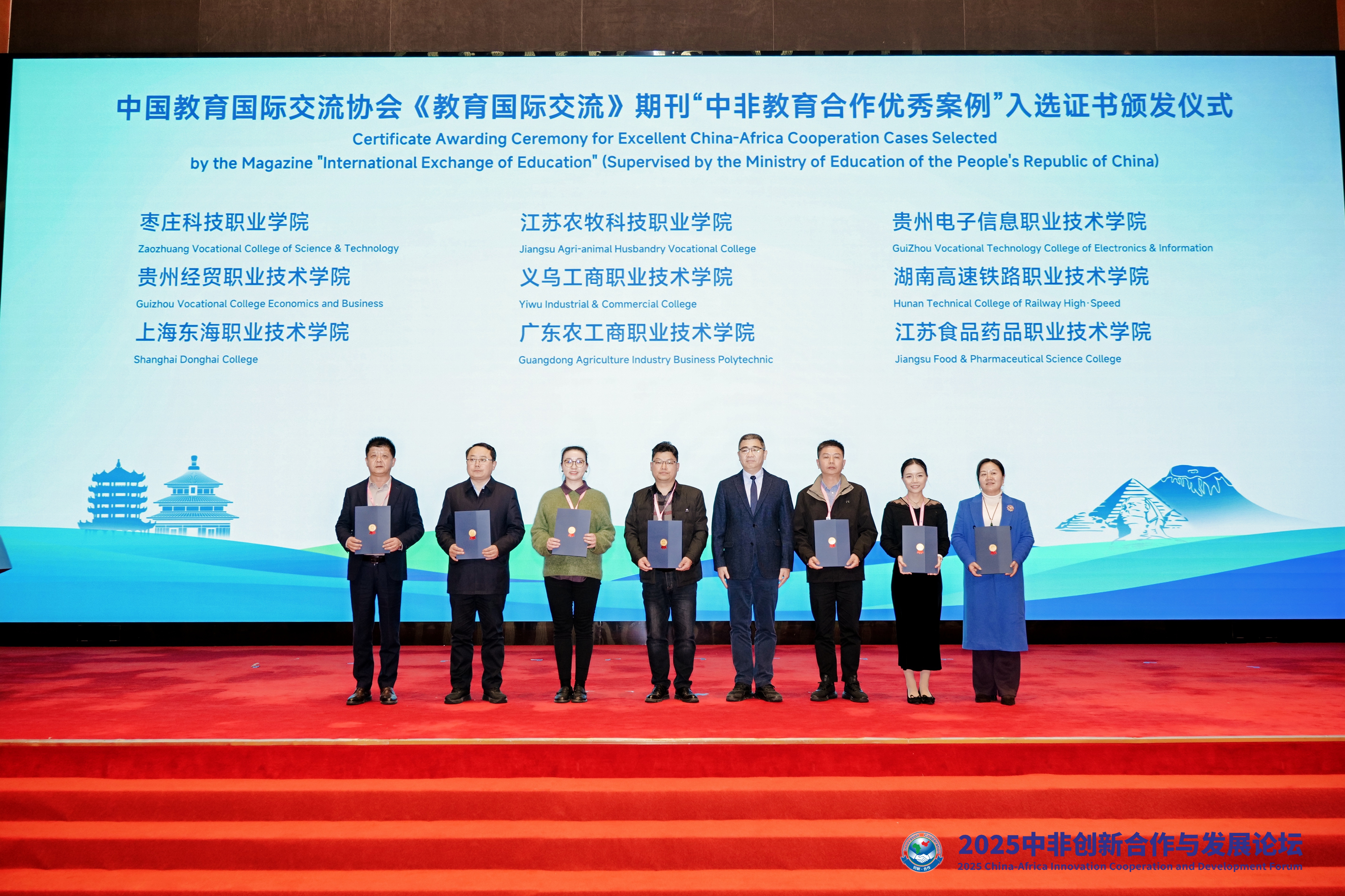 会上,中国教育国际交流协会、金砖国家技能发展与技术创新大赛组委会等机构分别颁发《教育国际交流》期刊“中非教育合作优秀案例”证书、“2025一带一路暨金砖国家技能发展与技术创新大赛——北非国际赛外方组委会及专家”证书等,我校党委委员、副院长樊曜等撰写的《教随产出 协同育人 构建中非教育共同体》案例入选《教育国际交流》期刊“中非教育合作优秀案例”、樊曜获颁布基纳法索在华职业教育合作专家证书、机电信息学院吴俊获颁“2025一带一路暨金砖国家技能发展与技术创新大赛专家证书”。