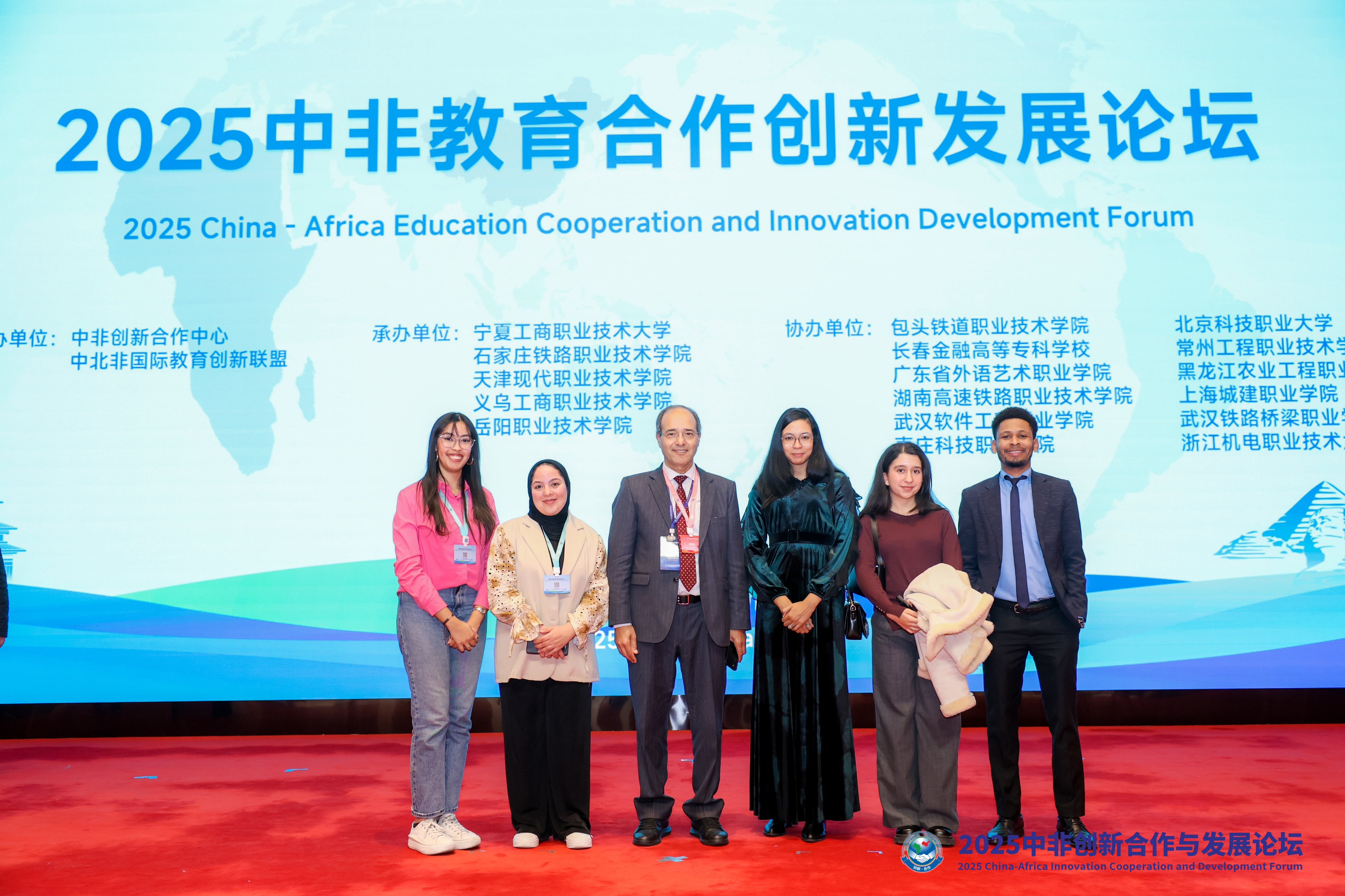 我校摩洛哥义乌商学院共建院校——蒙迪亚波利斯大学校长巴尔卡维教授应邀参加论坛、作中非教育合作主题报告。摩洛哥义乌商学院国际经济与贸易专业首批“2+1”学历生4名学生代表作为国际志愿者参加论坛服务,并观摩学习第四届中非青年创新创业大赛决赛。